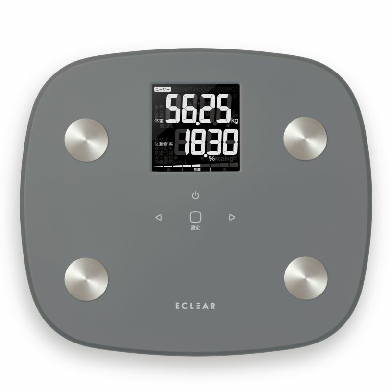 エレコム 体組成計 体重計 ヘルスメーター 自動認識機能付 MRI測定 100g単位 大画面 測定項目一覧表示 体脂肪率 BMI 内臓脂肪レベル 皮下脂肪率 グレー ELECOM