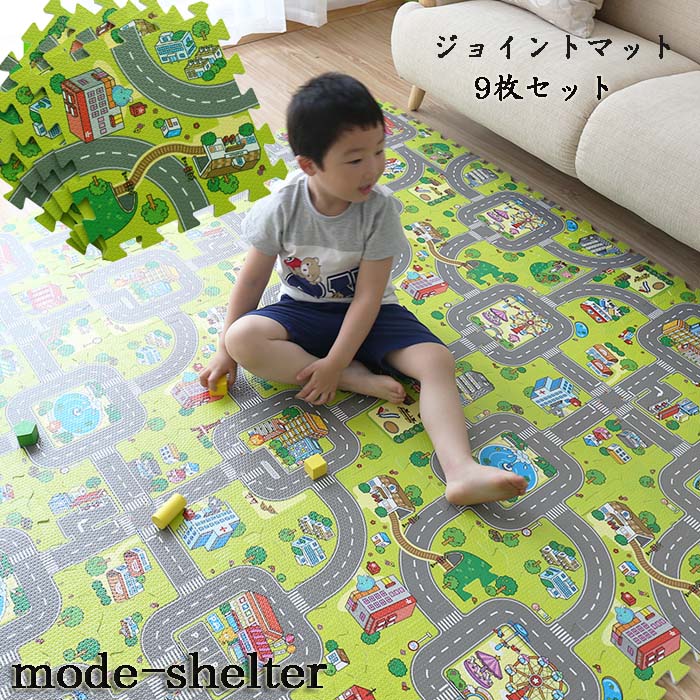 ジョイントマット 道路 遊園地 くるま 車 知育 パズルマット パズル マット キッズ EVA 防音 転倒 ケガ防止 赤ちゃん ベビー 知育 プレイマット 子供 フロアマット 都市道路 9枚セット 組み立て 滑り止め プレイマット 男の子 遊べるマット ロードマップ ルームマット