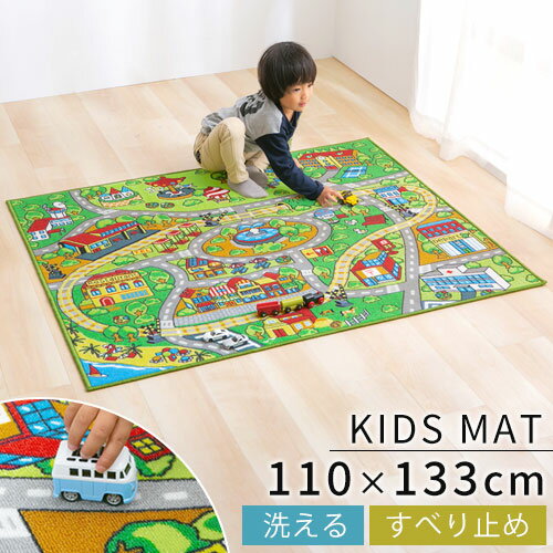 キッズマット 子供部屋 防汚 撥水加工 滑り止め付き 約 110×133cm ロードマップ キッズ プレイマット おもちゃ カーペット 敷物 道路 ラグ キッズルーム プレイ マット 子供 ルームマット こども キッズラグ ベビー 誕生日プレゼント こどもの日 春夏秋冬 おしゃれ