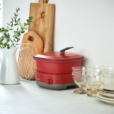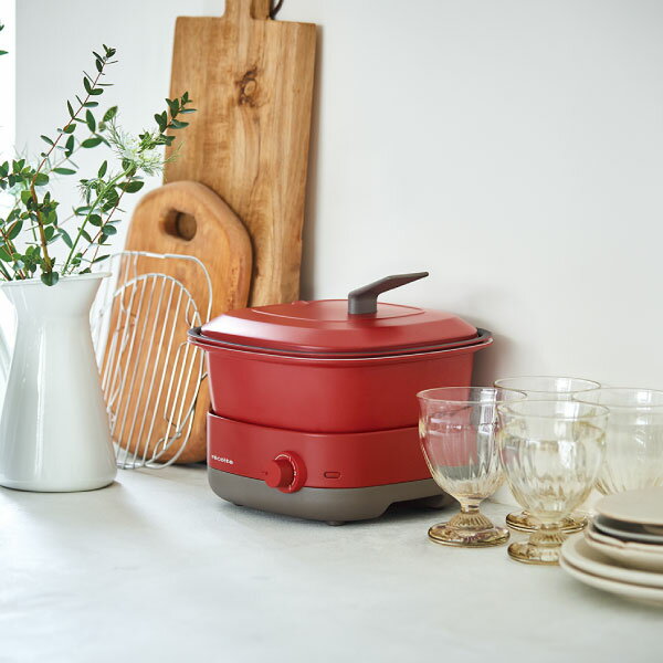 調理家電 おしゃれ 万能鍋 マルチクッカー コンパクト 一人暮らし 鍋 煮物 お米 蒸し 揚げ物 蒸し器 ホットプレート グリルプレート ホームパーティー ミニ 四角 便利 調理器 クリームホワイト レッド グレー 北欧 キッチン家電( recolte ポットデュオ キャレ レコルト )