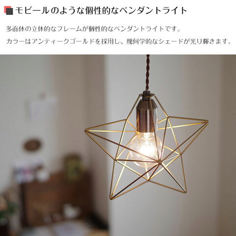 多面体の立体的なフレームで電球を囲んだモビールのような個性的なペンダントライトです。