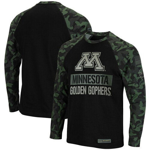 コロシアム ミネソタ ラグラン スリーブ Tシャツ 黒色 ブラック ゴールデンゴーファーズ 【大きめ】 長袖 【 SLEEVE COLOSSEUM BLACK CAMO OHT MILITARY APPRECIATION RAGLAN TSHIRT MIN 】