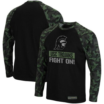 コロシアム サウスカルフォルニア トロージャンズ ラグラン スリーブ Tシャツ 黒色 ブラック 【大きめ】 長袖 【 SLEEVE COLOSSEUM BLACK CAMO OHT MILITARY APPRECIATION RAGLAN TSHIRT USC 】