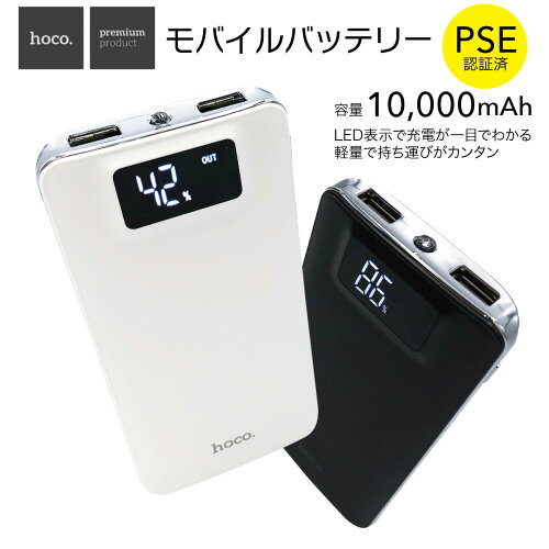 モバイルバッテリー 10000mAh 大容量 軽量 【液晶残量表示付】 iPhone12 plus iPhone8 iPhone android スマホ 充電器 スマートフォン モバイル バッテリー 携帯充電器 充電 hoco-bt01