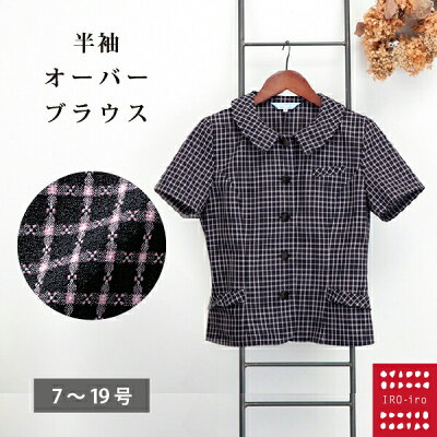 高評価★事務服 ブラウス オーバーブラウス 半袖 事務服 ol オーバーブラウス 半袖 I2022 カラー:黒×ピンク 事務 受付 制服 企業制服 仕事 オフィス ユニフォーム お買得 かわいい ブラウス Blouse事務服 ol シャツ レディース