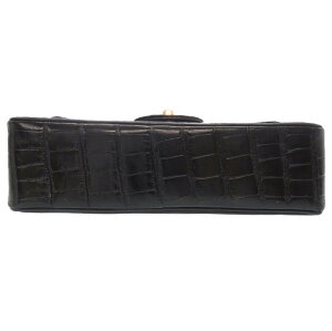 美品 シャネル クロコダイル ブラック ダブルフラップ ゴールドチェーン ショルダーバッグ ココマーク ターンロック 二重蓋 バッグ 黒 0093 【中古】 CHANEL