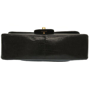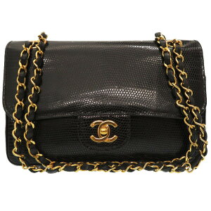 美品 シャネル リザード ダブルフラップ ブラック ゴールドチェーン ショルダーバッグ ヴィンテージ Wチェーン ターンロック ココマーク バッグ 黒 0182 【中古】 CHANEL